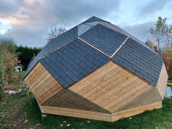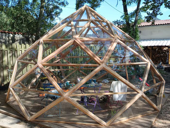 Le WIZZDOME est né d’un zome coupé en deux verticalement, puis recouché :